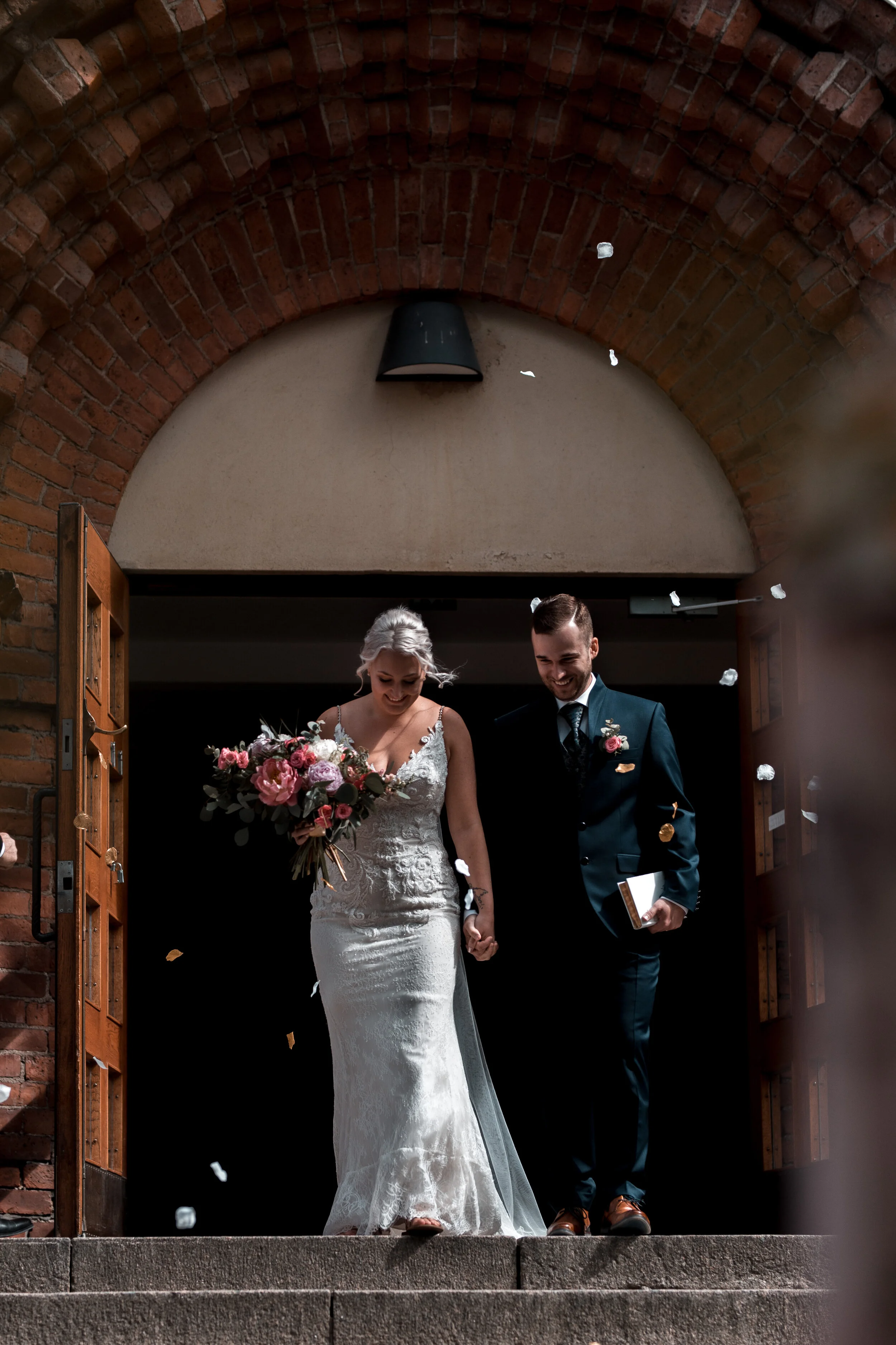 Vihkiminen oli meillä melko lyhyt, kesti noin parikymmentä minuuttia joista kyynelehdin noin kymmenen. En tiedä mikä noissa kirkoissa oikeen on mutta en vaan pysy kasassa siellä kun kaunis musiikki soi ja tuntuu siltä että jotain isoa tapahtuu. Enkä edes oo järin uskovaista tyyppiä. Noh, omissa häissä herkistyminen oli vielä tuplasti pahempi kuin normaalisti mutta siitäkin selvittiin ja meille kirkkovihkiminen oli ihan oikea valinta!